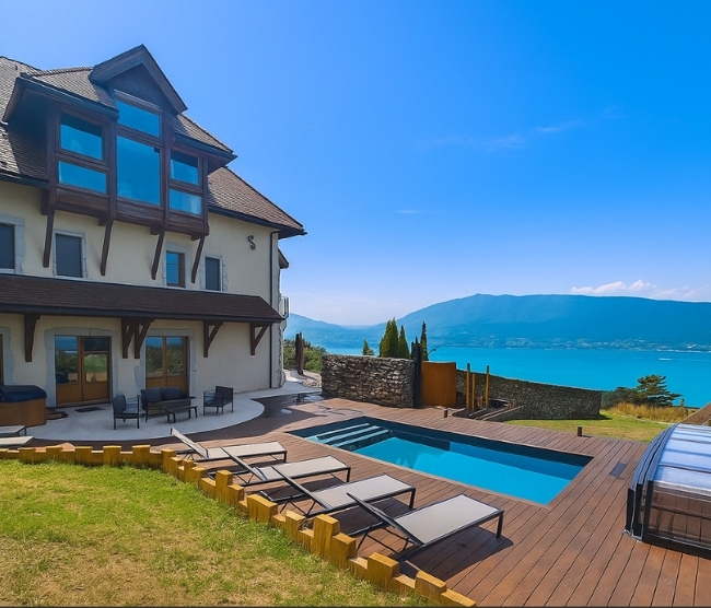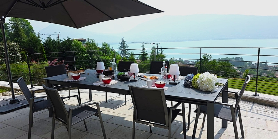 Un lieu unique face au lac d’Annecy, jusqu’à 26 convives dans un confort absolu